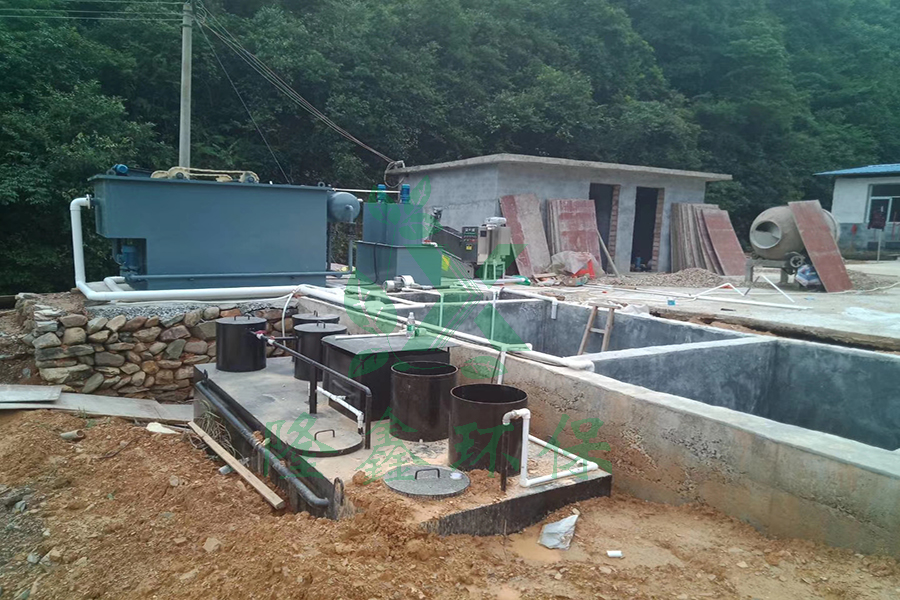 污水經(jīng)過前端化糞池處理后,污水中依然含有大部分大分子有機(jī)污染物,因此需要進(jìn)一步對(duì)其降解為小分子物質(zhì),為后續(xù)好氧生化做準(zhǔn)備,并且考慮到污水中氨氮和總磷的超標(biāo),因此必須設(shè)施好氧—缺氧的交替運(yùn)行環(huán)境來達(dá)到硝化—反硝化的交替運(yùn)行來達(dá)到脫氮除磷的效果,此處通過設(shè)置水解酸化池將后續(xù)好氧處理出水部分回流至水解酸化池來實(shí)現(xiàn)。污水經(jīng)過水解酸化池后進(jìn)入好氧池,此處將好氧池分為兩段,它的好處在于在不同的好氧段,微生物根據(jù)環(huán)境不同而呈現(xiàn)空間的分布,具備針對(duì)性,有著更好的去除效果。污水經(jīng)過前端各個(gè)生化處理設(shè)施處理后,有機(jī)污染負(fù)荷很大程度得到降解。但污水中的色度依然難以達(dá)標(biāo),為了對(duì)色度的去除,并同時(shí)考慮對(duì)COD的降低和氨氮及總磷的降低,因此此處設(shè)置混凝沉淀池并且投加針對(duì)性的藥劑。沉淀池出水,進(jìn)入消毒池,然后最終達(dá)標(biāo)排放。